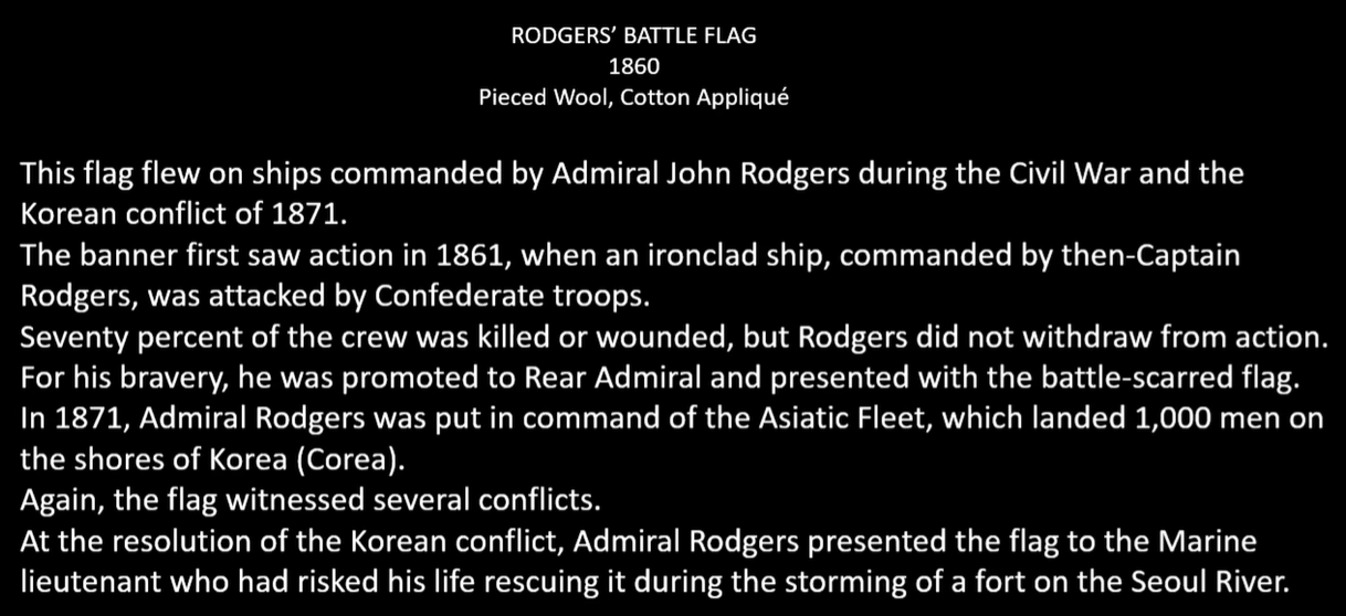 이 깃발은 JOHN RODGERS 제독이 지휘한 함선들에서