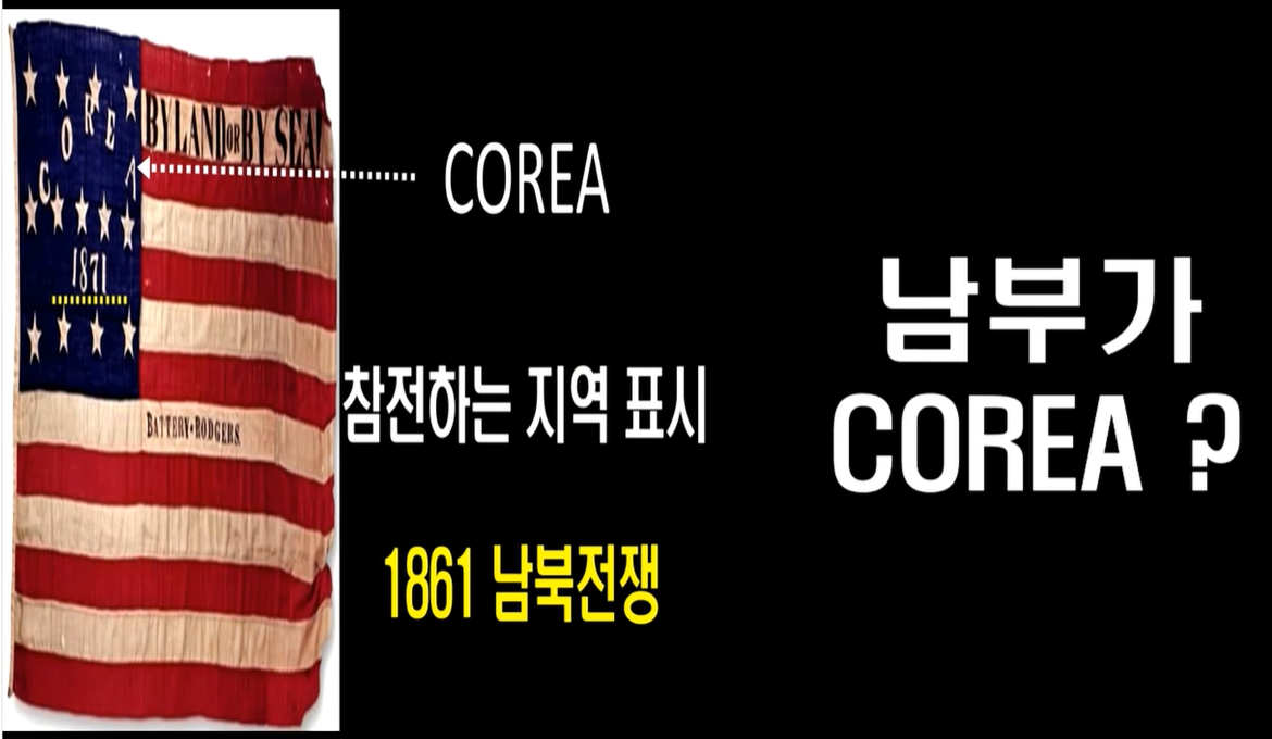 그러면 남부 연합군의 공격을 받았을 때도 이 깃발을 사용한 것이며, 북미가 COREA라는 말이다.